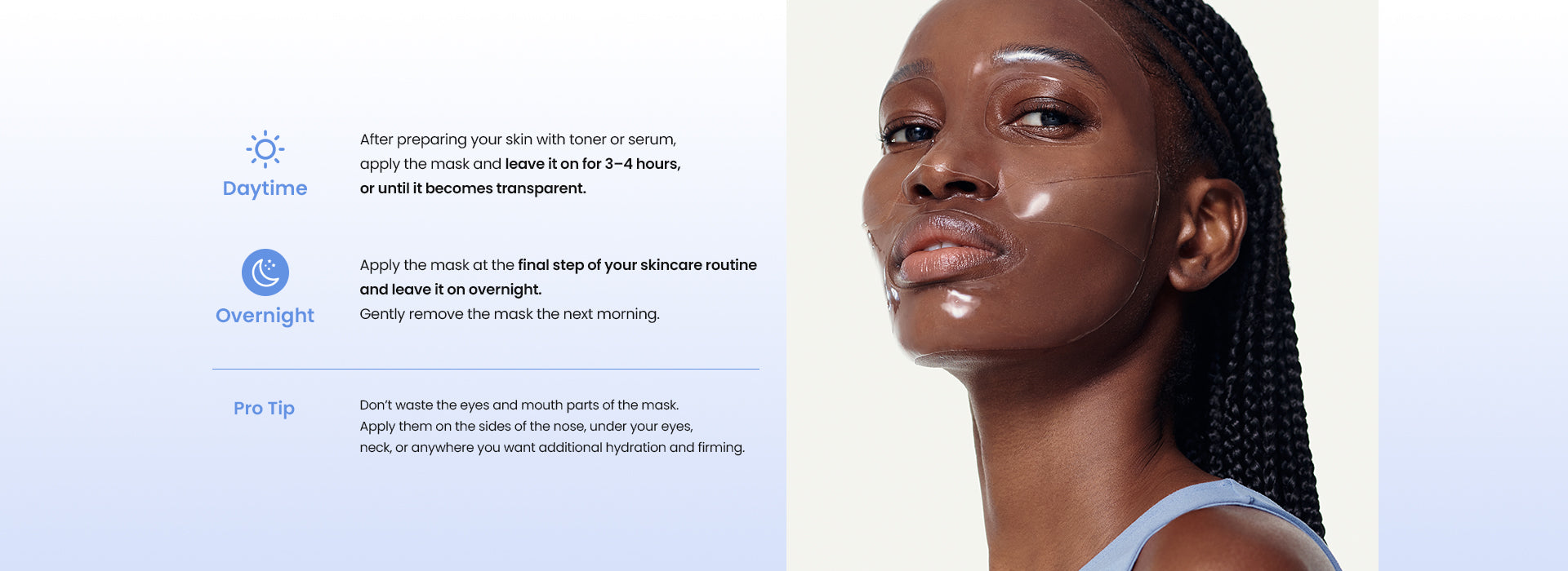 Hydro Cera-nol Mask is a hydrogel mask molded with essence to provide hydration. Longer use enhances aibsorption of safe ingredients and the excelent adhesion overtime makes them suitable for overnight or 3-4 hours during the day.